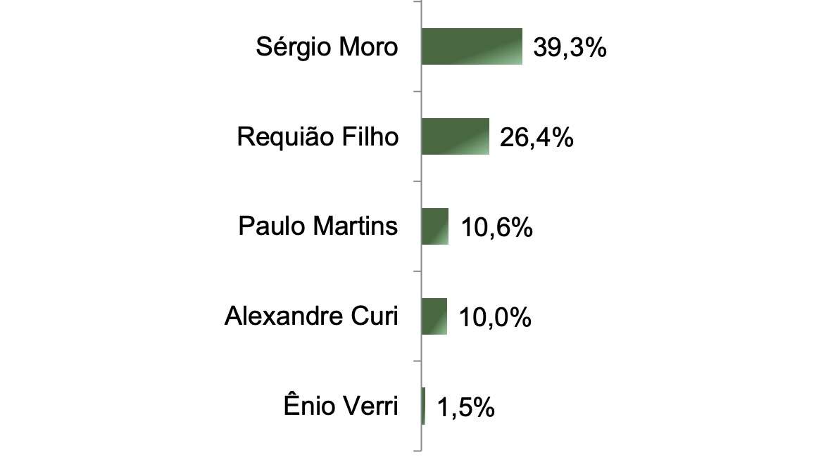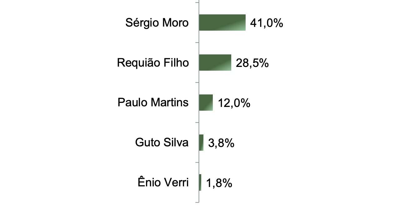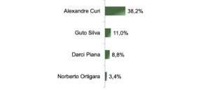 Para 38,2% dos eleitores ouvidos, o candidato com mais chance de voto seria Alexandre Curi. Guto foi lembrado por 11%, o vice-governador por 8,8% e 3,4% citaram Ortigara. O resultado chama a atenção pelo descolamento: Curi tem o triplo de intenção de voto do principal adversário dentro do PSD para dar continuidade à gestão de Ratinho.