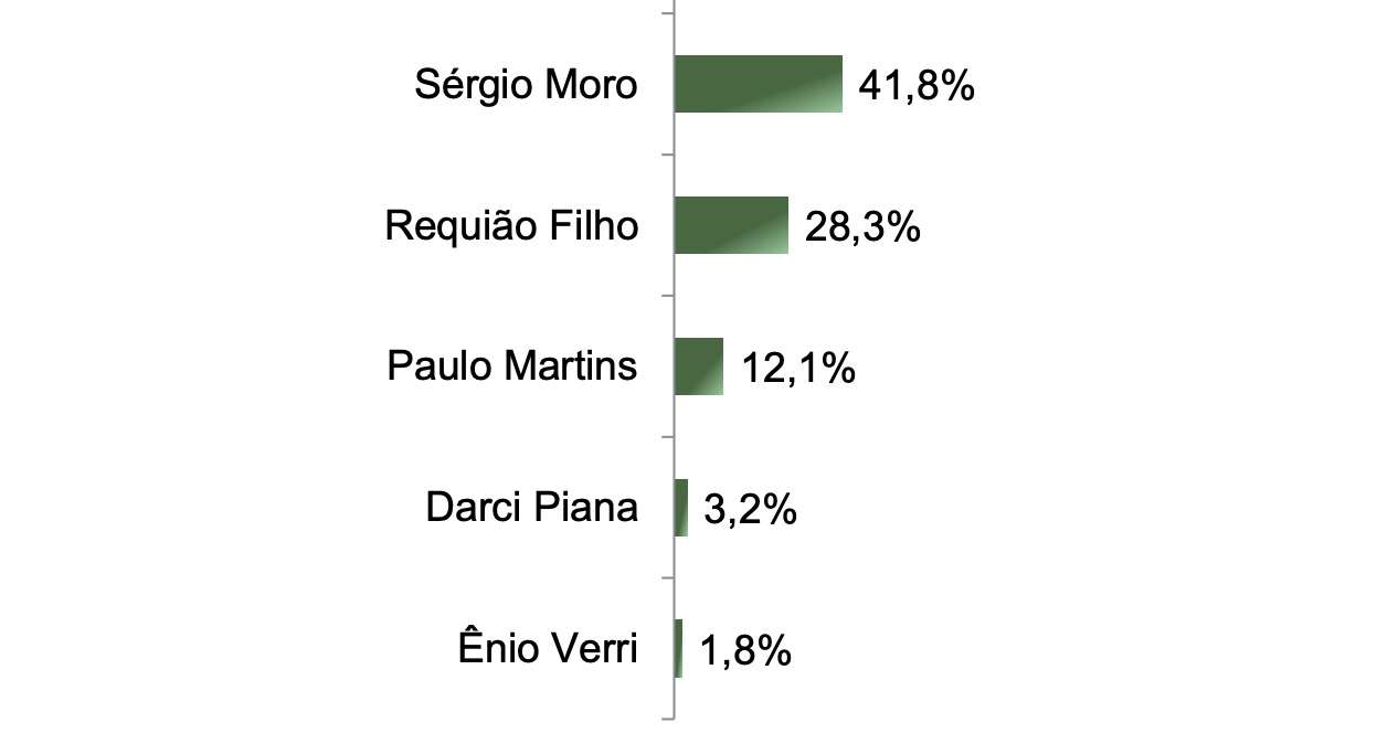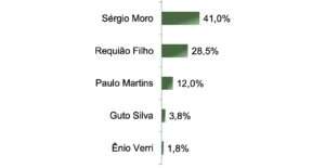 Enquanto aguarda a decisão nacional, Moro comemora o desempenho nas pesquisas — sempre remetido a Antonio Rueda, mandachuva do partido. O senador aparece com cerca de 40% de intenção de voto, independentemente dos adversários.
