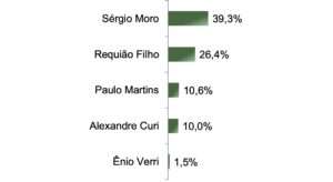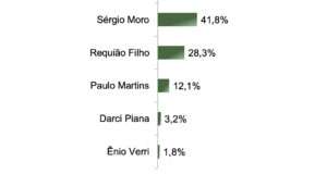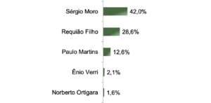 Requião Filho, que na semana passada assumiu o PDT, num evento com Carlos Lupi em Curitiba, figura na 2ª colocação — seguido de Paulo Martins (Novo) e do candidato do PSD. Veja abaixo os cenários pesquisados.